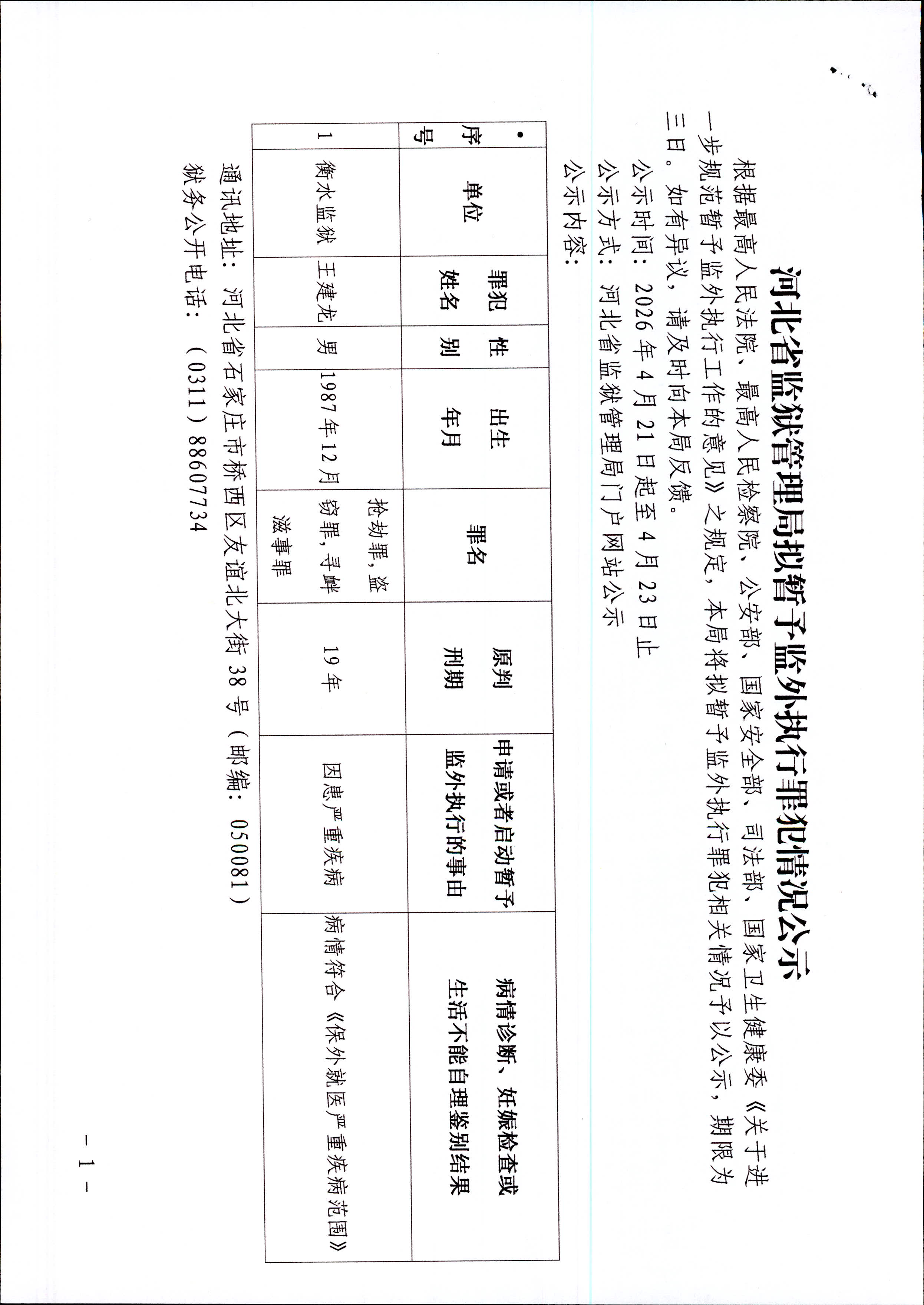 2026年4月21日至23日河北省监狱管理局拟暂予监外执行罪犯情况公示